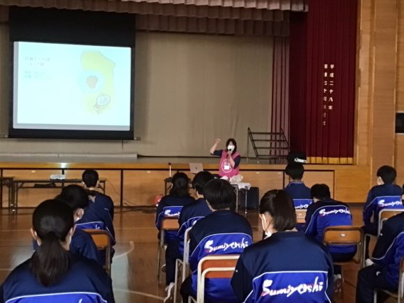10月5日(火)住吉中学校3年生88名の生徒さんに講話しました。