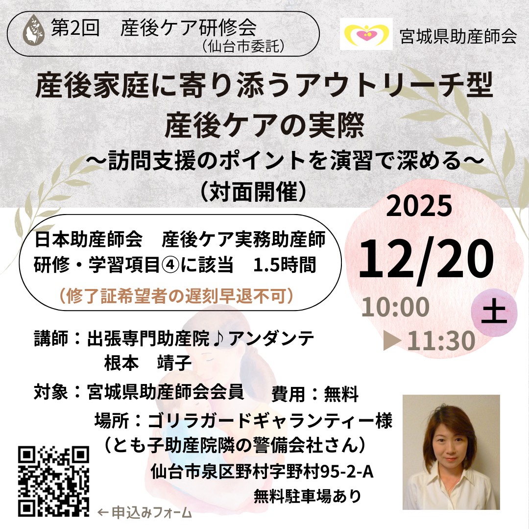 第2回 仙台市委託産後ケア事業研修 「産後家庭に寄り添うアウトリーチ型産後ケアの実際」