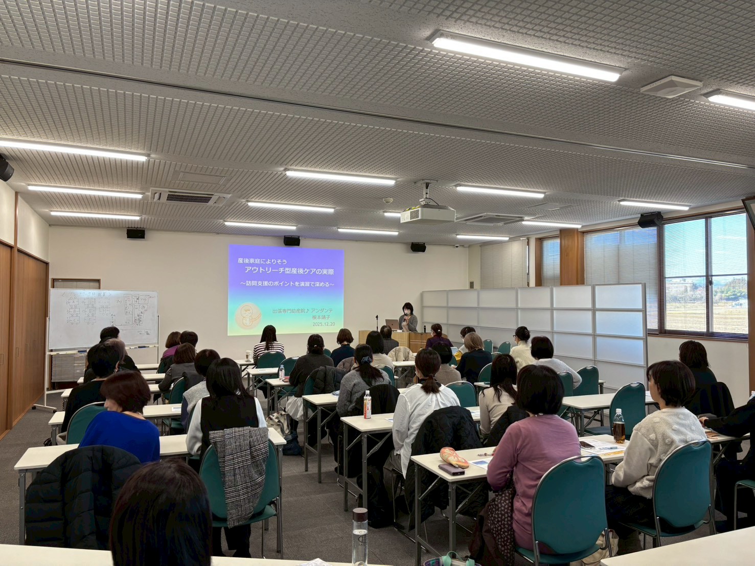 出張専門助産院 アンダンテ院長 根本靖子助産師が講師を務め、産後ケアに携わる当会会員助産師 39名の皆様にご参加いただきました。